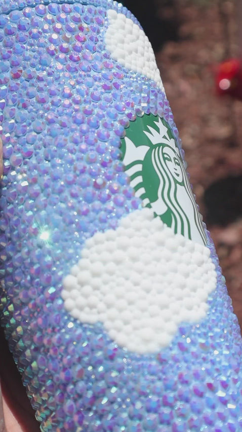 Full Bling Baby Blue Cloud Rhinestone Starbucks Tumbler.